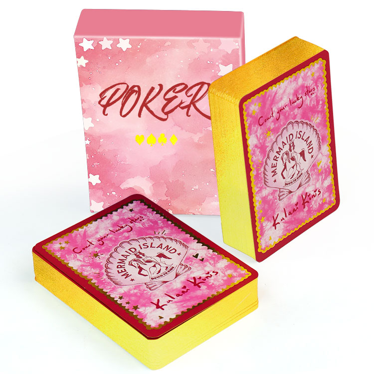 Customized gold-embossed double sets of pink poker cards by professional manufacturers