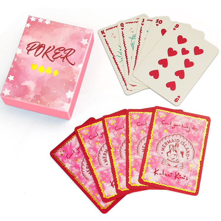 Customized gold-embossed double sets of pink poker cards by professional manufacturers